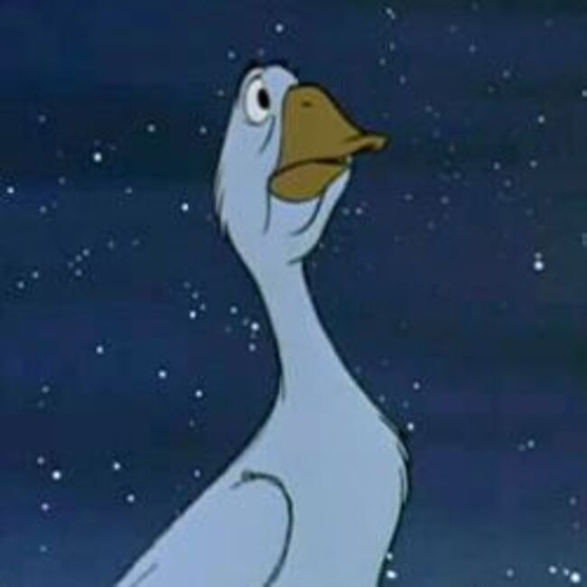This is a picture of Lucy, the fictional character, the goose who helps spread the news about the missing puppies in 101 Dalmatians.